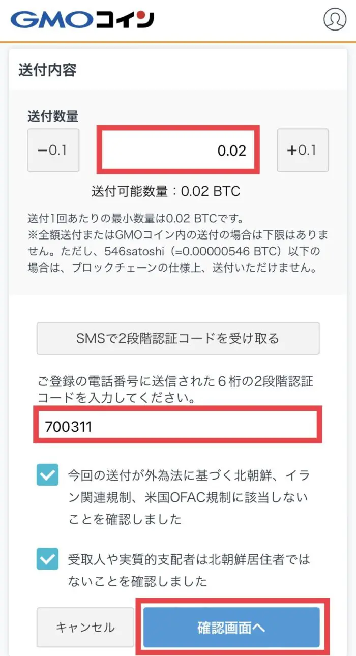 ここで送金する予定のビットコインの数量を入力し、2段階認証コードを発行します。