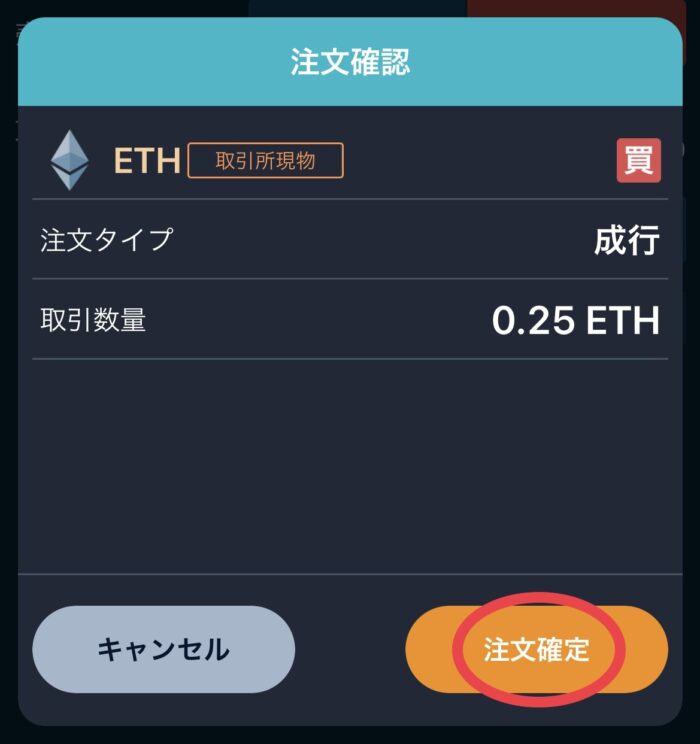 確認画面が表示されるので、良ければ【注文確定】を選択します。